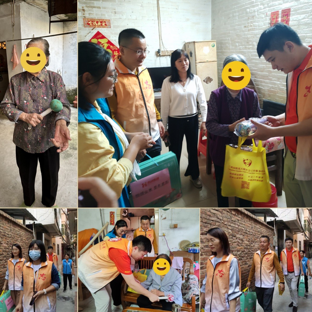 10月23日下午,欢创集团党支部联合大龙街社工举办“重阳敬老情 温暖老人心”社区关爱活动,到傍东村和新桥村探访行动不便的孤寡独居长者,为他们送上重阳节慰问礼包和祝福,叮嘱他们好好保重身体。努力营造“帮贫助老、关爱老人、共建和谐”的社会氛围,让老年人真真切切地感受到党和政府的关怀与关怀。