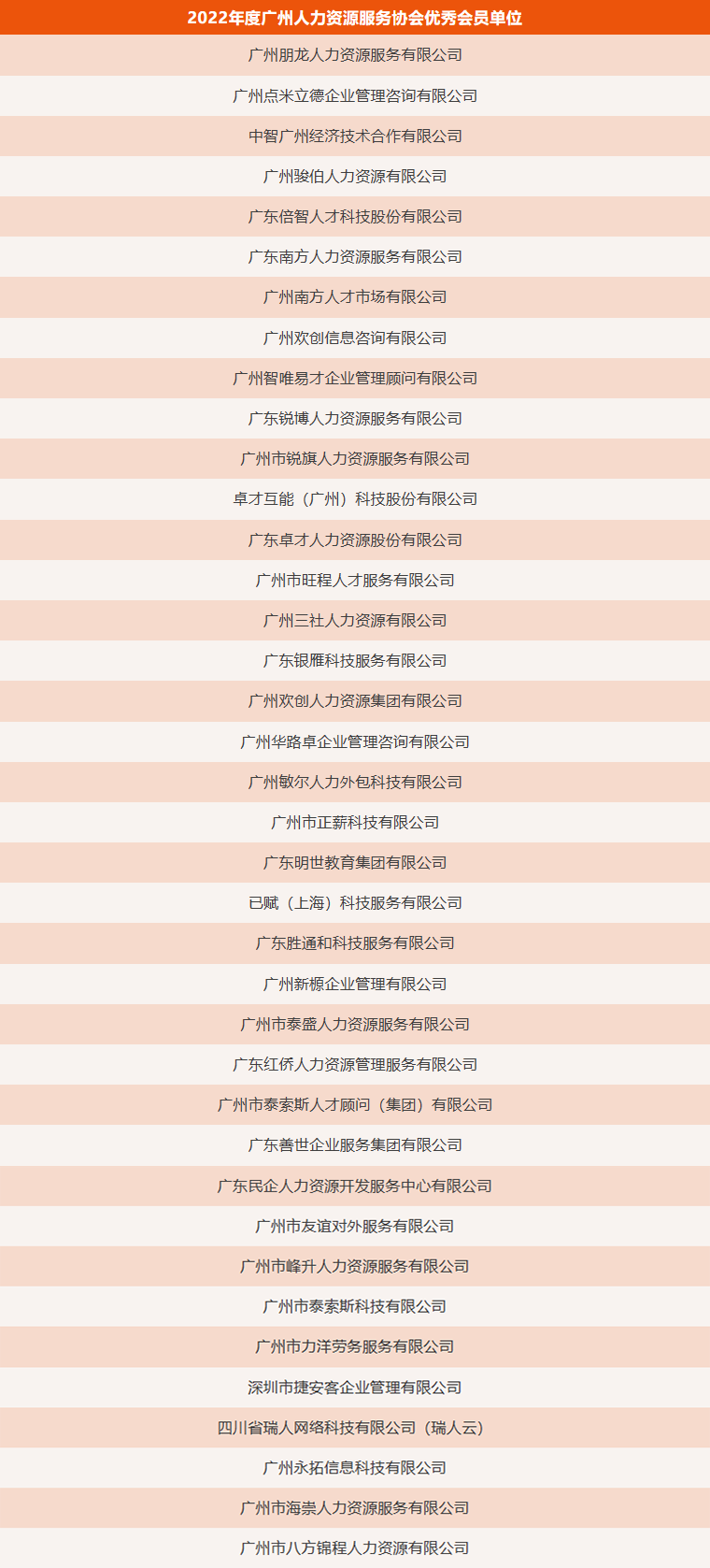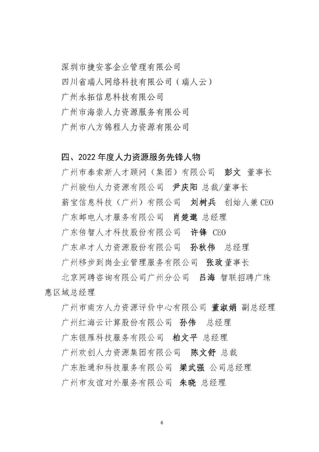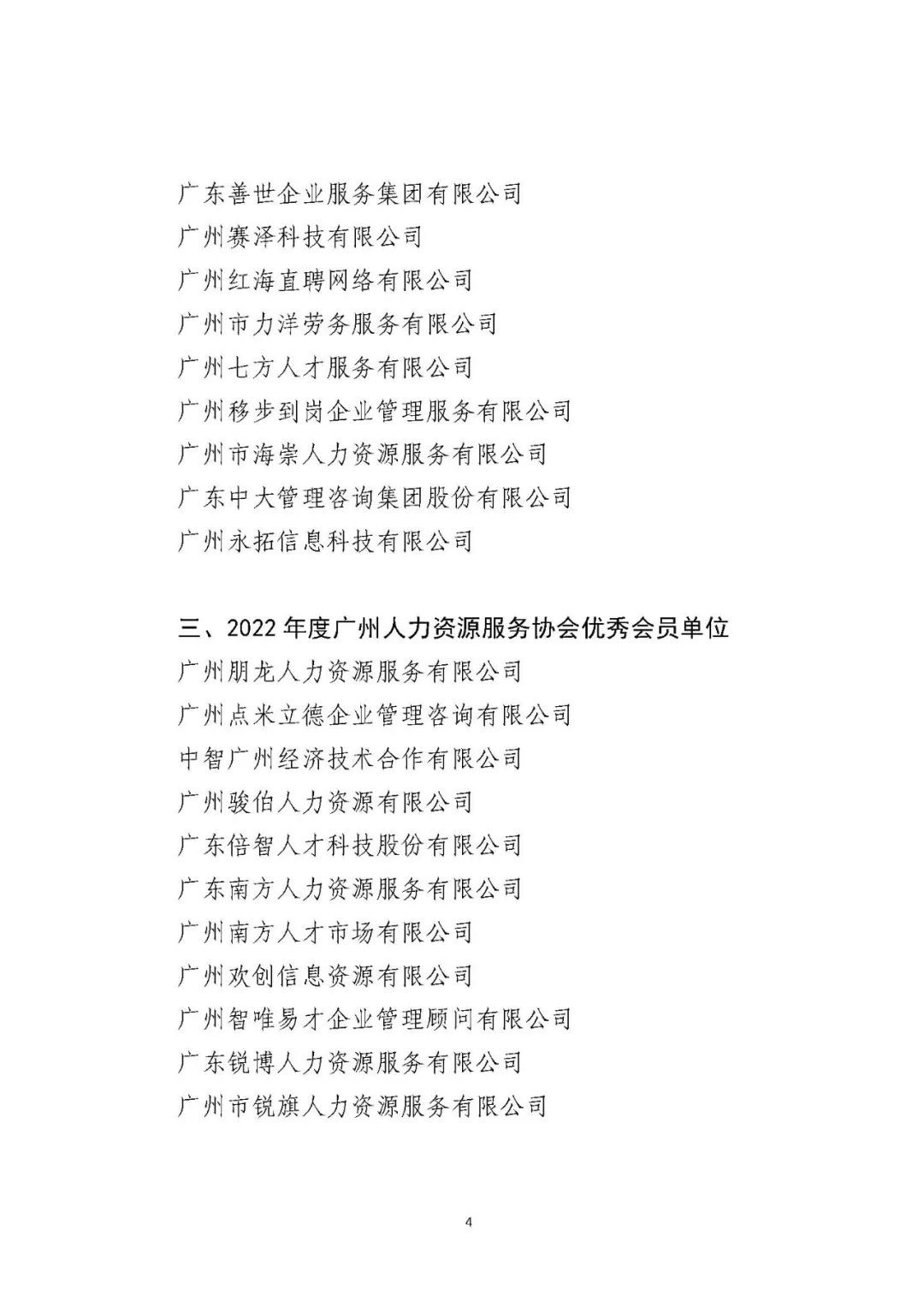 2022年度人力资源服务品牌机构、人力资源优质服务商、优秀会员单位及人力资源服务先锋人物名单
